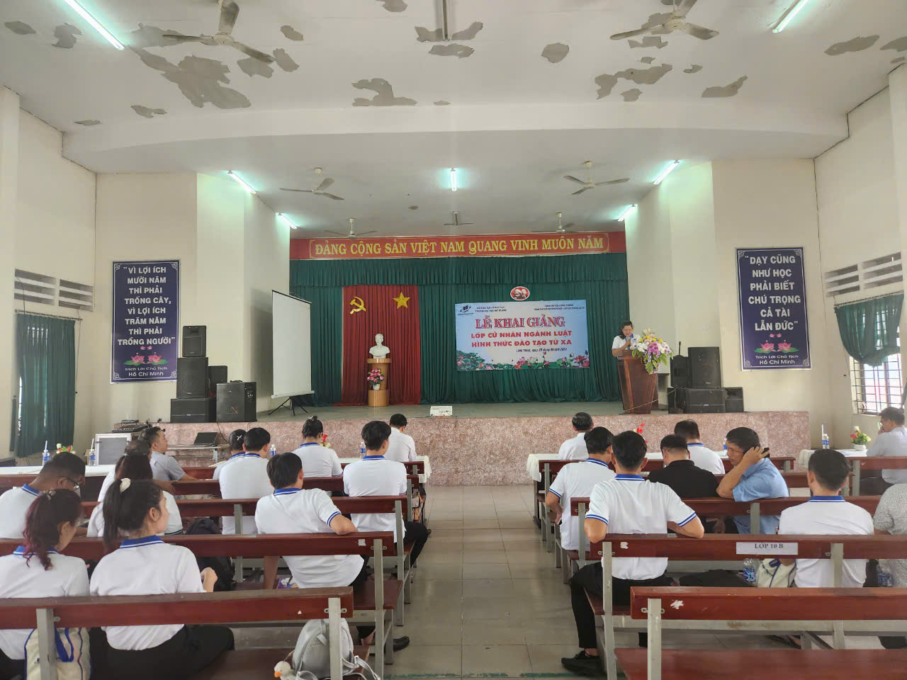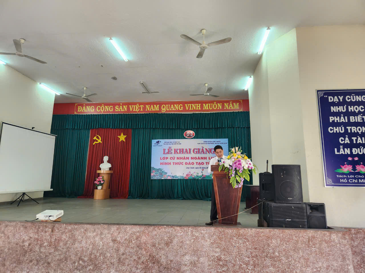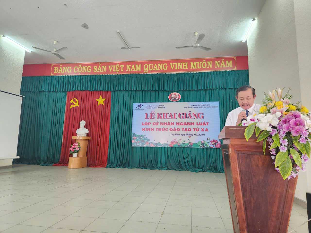 Sáng ngày 29/9/2024 tại Trung tâm Giáo dục nghề nghiệp – Giáo dục thường xuyên huyện Long Thành đã diễn ra buổi Lễ khai giảng lớp Đại học Luật hình thức đào tạo từ xa, do Trường Đại học Mở Thành phố Hồ Chí Minh liên kết với Trung tâm Giáo dục nghề nghiệp – Giáo dục thường xuyên huyện Long Thành tổ chức. Tới dự buổi lễ có Ông Hứa Văn Đức, giám đốc Trung tâm Đào tạo từ xa Trường Đại học Mở Thành phố Hồ Chí Minh; Ông Nguyễn Văn Hòa, giám đốc Trung tâm Giáo dục nghề nghiệp – Giáo dục thường xuyên huyện Long Thành; cùng các thầy cô và 24 tân sinh viên của lớp Đại học Luật tham dự.